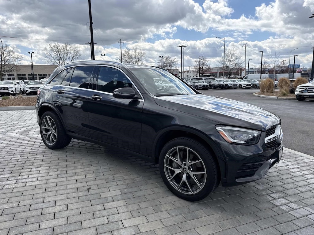 Certified. Graphite Gray Metallic 2022 Mercedes-Benz GLC GLC 300 4MATIC® 4MATIC® 9-Speed Automatic I4 12.3" Digital Instrument Cluster, 3.27 Axle Ratio, 4-Way Lumbar Support, 4-Wheel Disc Brakes, 6 Speakers, 64-Color Ambient Lighting, ABS brakes, AM/FM radio, AMG® Line, AMG® Line Body Styling, AMG® Line Exterior, AMG® Line Floor Mats, AMG® Line Interior, Apple CarPlay®/Android Auto®, Auto High-beam Headlights, Auto tilt-away steering wheel, Auto-dimming Rear-View mirror, Black Fabric Headliner, Bumpers: body-color, Delay-off headlights, Driver door bin, Driver vanity mirror, First Aid Kit, Front dual zone A/C, Fully automatic headlights, Heated door mirrors, Heated Steering Wheel, Illuminated Door Sills, Illuminated entry, Leather steering wheel, LED Intelligent Light System, MB-Tex Upholstery, Panic alarm, Panorama Sunroof, Perforated Brake Discs, Power Front Seat w/Driver Memory, Power passenger seat, Premium Package Lite, Rear fog lights, Rear reading lights, Rear window defroster, Security system, SiriusXM Satellite Radio, Speed-sensing steering, Split folding rear seat, Surround View System, Tilt steering wheel, Traction control, Variably intermittent wipers, Wheels: 8.5J x 20 ET 40 AMG® Y 5-Spoke.
